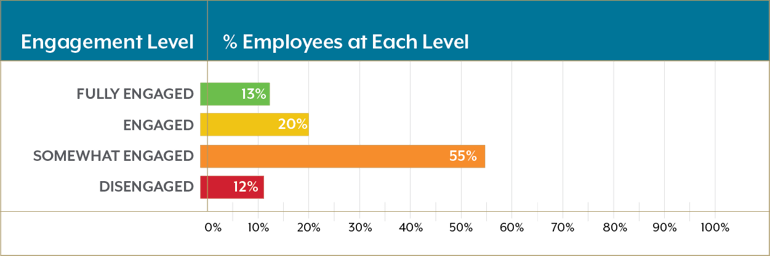 Employee productivity also mirrors the national averages. See the table below for a summary of engagement level vs. performance delivered: